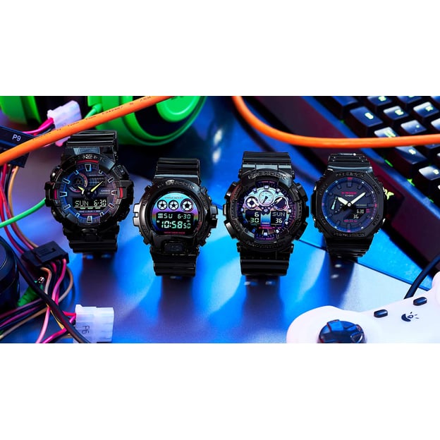 Японський годинник Casio GA-2100RGB-1A – водо- та ударостійкий G-SHOCK з лінійки Virtual Rainbow, натхненної естетикою кібертехнологічного ігрового світу. Дизайн відрізняється чорним глянцевим корпусом та ремінцем, інверсійний циферблат прикрашений райдужним напиленням та різнобарвною деталізацією. Колекція годинників Casio GA 2100 створена для шанувальників екстремальної міцності G-Shock від японського бренду Casio. Завдяки корпусу Carbon Core Guard, годинник більш стійкий до ударів, ніж звичайний годинник, а його «начинка» поміщається в корпус завтовшки всього 11,8 мм. GA-2100 – найтонший G-Shock за всю історію та максимально комфортний для повсякденного носіння.