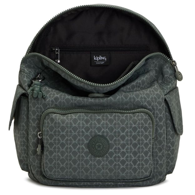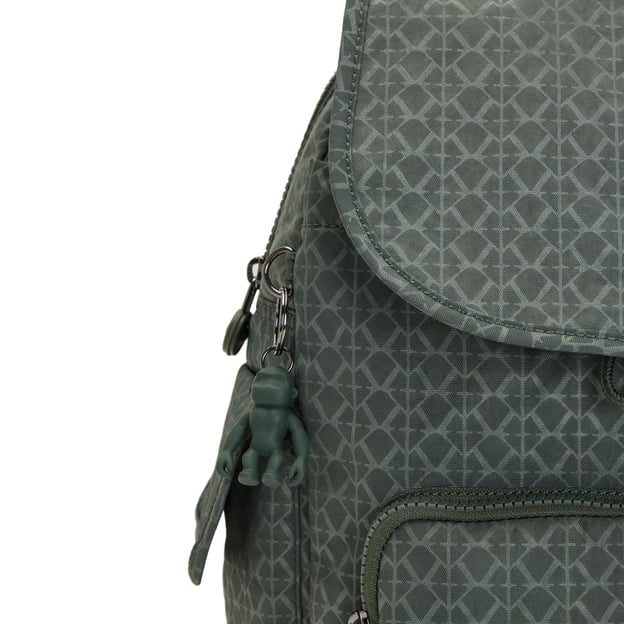 Kipling CITY PACK S Sign Green Emb (F6C) (27x33,5x19см / 13 л / темно-зелений з принтом) - маленький жіночий рюкзак від відомого бельгійського бренду Kipling.