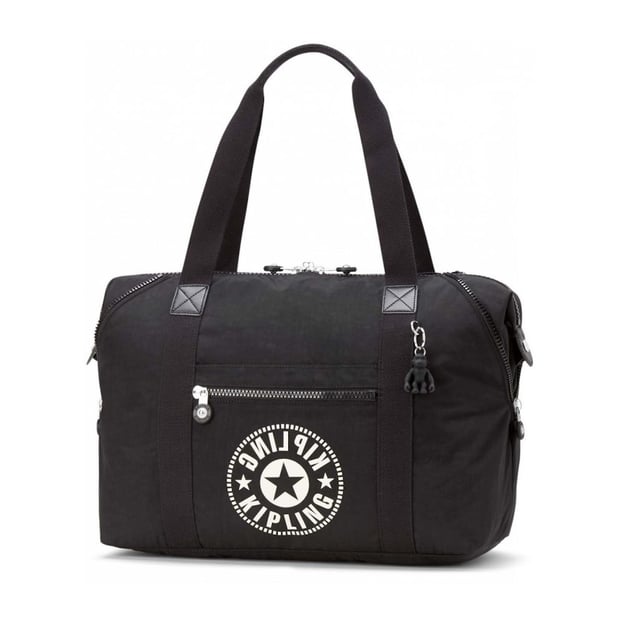 Kipling ART M Lively Black (51T) KI2522_51T (чорна) - дорожня сумка в базовому чорному кольорі від бельгійського бренду Kipling. Сумка Kipling ідеально підійде для любителів великих аксесуарів. Модель з регульованими кутами на блискавці та кнопці, які змінюють об'єм та зовнішній вигляд. Сумка оснащена спеціальною манжетою на задній панелі для кріплення на телескопічній ручці основного багажу. Манжета також стане додатковою кишенею. Довжина ручок дозволяє носити сумку в руках і на плечі. Сумка доповнена оригінальним круглим друкованим логотипом Kipling на передній панелі та фірмовим брелоком у вигляді мавпочки-робота.