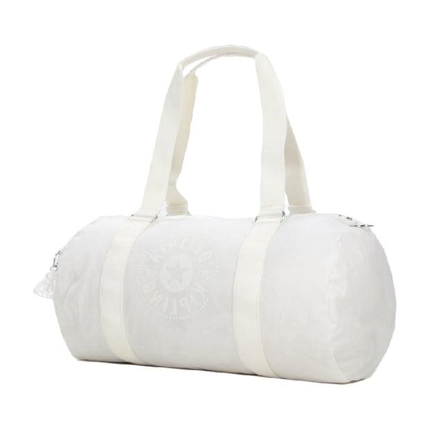 Kipling ONALO Lively White (50Z) (біла) - невелика спортивна дорожня сумка в білому кольорі від популярного бренду Kipling. Сумка підійде, як для походу в тренажерний зал, так і для поїздки на вихідні. Вінтажний дизайн моделі приваблює молодих та активних людей, які дбають про свій стиль. Ефектно виглядає зі спортивним та повсякденним одягом. Модель має одне основне відділення на блискавці та додаткову внутрішню кишеню для дрібниць. Сумка виготовлена з фірмового жатого нейлону. Цей вид текстилю стійкий до розривів, легко очищається від плям та витримує великі навантаження. Сумка доповнена круглим друкованим логотипом Kipling та брелоком у вигляді мавпочки-робота, що є талісманом бренду.