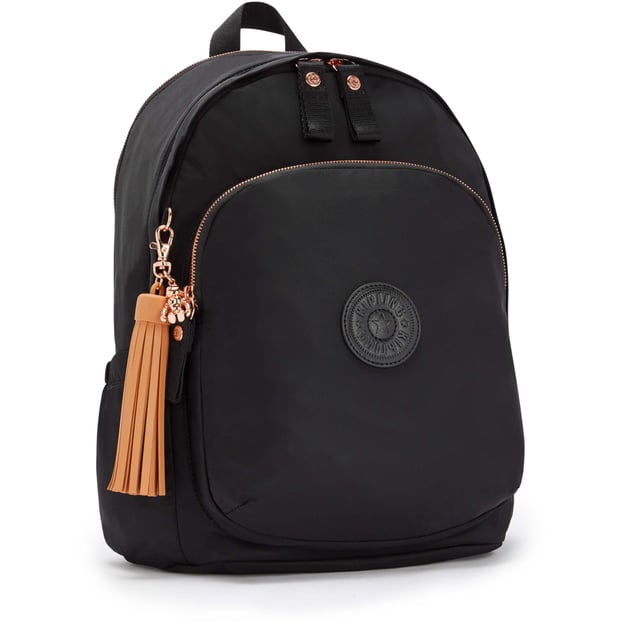 Рюкзак Kipling DELIA M Rose Black (53H) - інноваційний варіант класичної моделі Delia з покращеним дизайном та функціональністю. Ця містка модель має три відділення, в одному з яких передбачено спеціальне місце для ноутбука 15''. Інші відділення забезпечені кишенями для дрібних предметів, органайзером для ручок і тримачем для ключів. Бічні кишені призначені для пляшок із водою або невеликої парасольки, а на задній панелі є кишеня-рукав, що дає змогу закріпити рюкзак на ручці валізи.