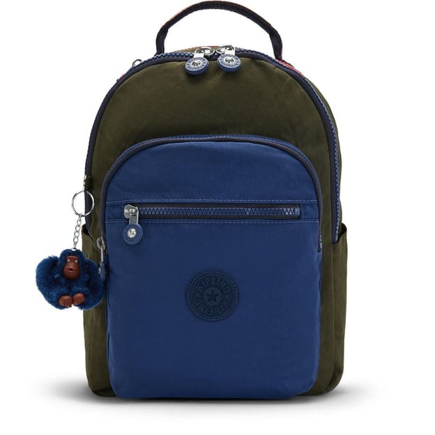 Kipling SEOUL S Seaweed Gr Bl (QW5) - яскравий і стильний рюкзак з м'ятого нейлону кольору хакі з синьою кишенею і червоними ременями. Компактна, але містка модель ідеально підходить для повсякденного використання, подорожей і ділових поїздок. Вона легко вміщує всі необхідні речі, такі як ноутбук, документи, особисті предмети та аксесуари. Широкі плечові ремені регулюються за довжиною, рівномірно розподіляючи навантаження на плечі, знижуючи втому навіть у разі тривалого носіння рюкзака.