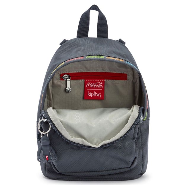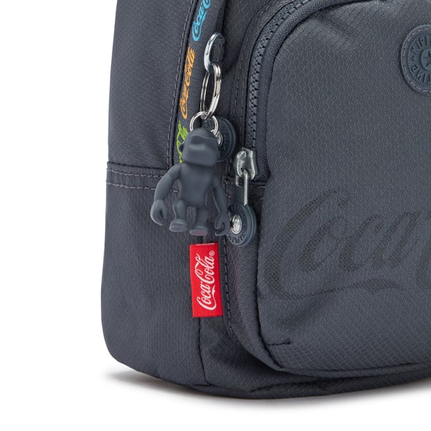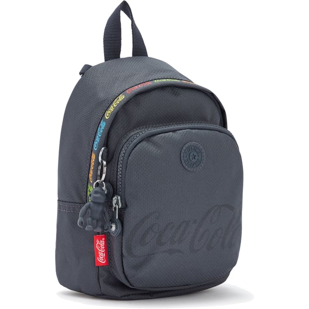 Kipling DELIA COMPACT Cc Graphics (Y32) - стильний і компактний рюкзак-сумка темно-сірого кольору із колекції Coca-Cola. Ця модель ідеально підходить для сучасних жінок, які цінують функціональність і яскравий, впізнаваний дизайн. Завдяки водовідштовхувальному матеріалу, рюкзак ідеально підходить для використання в будь-яку погоду. Невибагливість у догляді робить його ідеальним для повсякденного використання: досить просто протерти поверхню, щоб видалити забруднення. Рюкзак також містить фірмовий брелок-мавпочку, що додає чарівний акцент до вашого стилю. Основне відділення пропонує великий простір для ваших повсякденних речей, а внутрішня кишеня на блискавці допомагає тримати дрібні предмети в порядку. Додатково лицьова кишеня на блискавці забезпечує легкий доступ до часто використовуваних речей.
