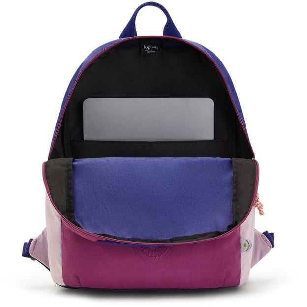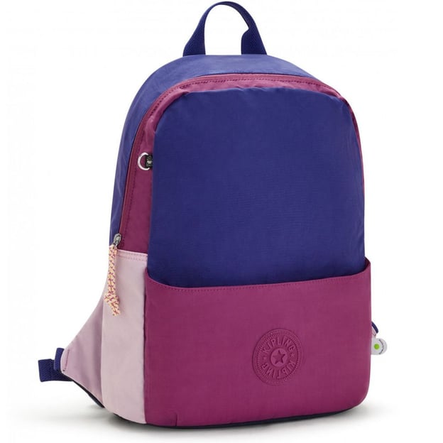 Kipling SONNIE Berry Blue Pink (T78) - великий рюкзак на 21 літр із лімітованої колекції Kipling Limited Edition підходить як для дівчат, так і для хлопців. Цей яскравий рюкзак, створений із перероблених матеріалів, подарує вам радість і комфорт. Дизайнерська команда виробника використовувала залишки тканин для створення унікального продукту, де кожен рюкзак SONNIE поєднує в собі різноманітні кольори та матеріали, максимально ефективно використовуючи доступні ресурси. Ця елегантна та зручна модель включає безпечне відділення для ноутбука з діагоналлю 15 дюймів, верхню ручку для легкого перенесення та передню кишеню на надійній блискавці.