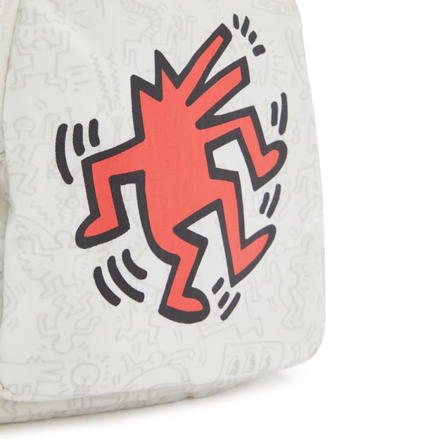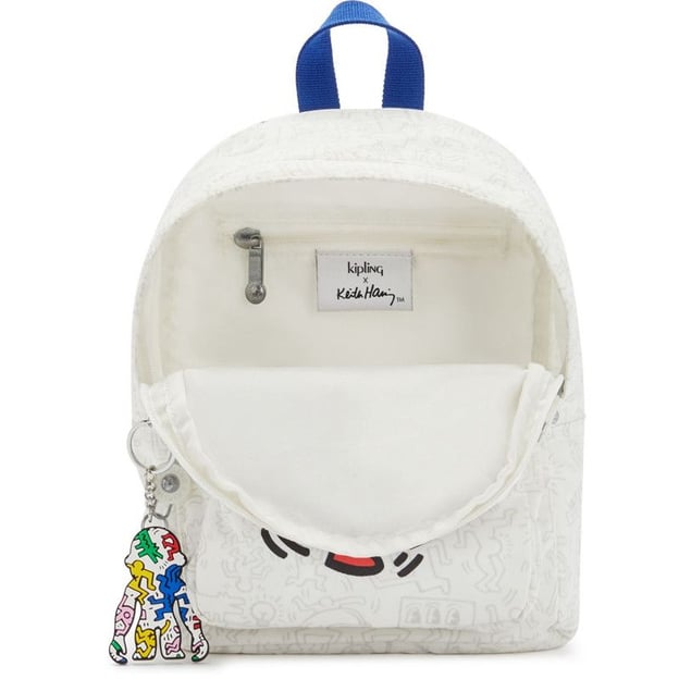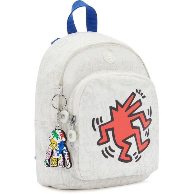 Kipling DELIA COMPACT Kh Public Art (68I) - мініатюрний жіночий рюкзак молочного кольору з принтами і синіми ременями, прикрашений культовими ретро-ілюстраціями знаменитого американського художника 80-х років, Кіта Харінга (Keith Haring). Стильний дизайн моделі-трансформера із колекції Keith Haring х Kipling дає змогу носити її як рюкзак або як сумку через плече, адаптуючись до вашого настрою і потреб. У комплекті йде фірмовий брелок-мавпочка, який додає чарівний акцент до вашого стилю. Основне відділення пропонує достатній простір для всіх ваших повсякденних речей, а внутрішня кишеня на блискавці допомагає тримати дрібні предмети в порядку. Додатково лицьова кишеня на блискавці забезпечує легкий доступ до речей, що часто використовуються, роблячи цей аксесуар не тільки стильним, але й неймовірно практичним.