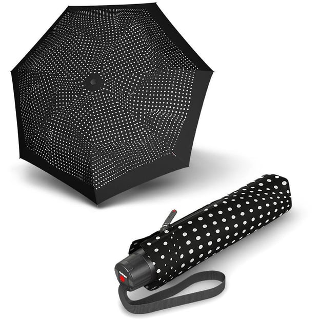 Knirps T.050 Medium Manual Bolero Black/Ecru (чорний в горошок) - жіноча механічна парасолька в горошок від відомого німецького бренду Knirps. Суперлегка парасолька в класичному дизайні в горошок. Міцна, вітростійка конструкція на 7 спицях. Зручна складана модель з легким у користуванні ручним механізмом відкриття-закриття. Діаметр куполу 89 см, що дозволяє комфортно перебувати під парасолькою одній людині. Купол виготовлений із поліестеру, який швидко сохне, з якісною натяжкою матеріалу. Комфортна ручка доповнена ремінцем-петелькою та фірмовим логотипом із червоною цяткою. Захисний чохол захистить сумку від вологи.