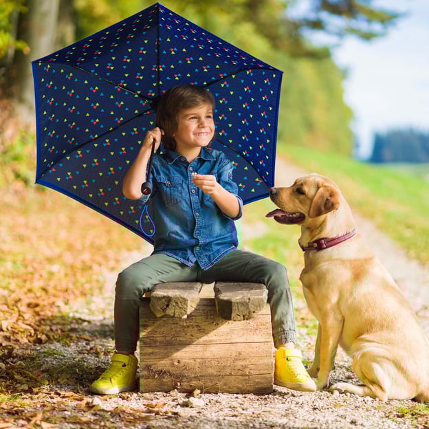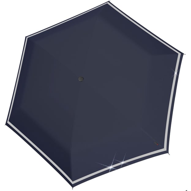 Knirps Rookie Manual (Navy Reflective/темно-синя зі світловідбивальною смугою) - надійна дитяча парасолька з ручним механізмом від німецького бренду Knirps. Парасолька розроблена та виготовлена для дітей віком від шести років. Завдяки зручному розміру Rookie завжди знайдеться місце у шкільній сумці чи рюкзаку. Дитяча парасолька відкривається вручну і проста в експлуатації. Модель була надійно протестована в аеродинамічній трубі на швидкості до 80 км/год. Додаткову безпеку забезпечує світловідбивальна смуга по всьому периметру в нижній частині купола. Простота використання та зносостійкі матеріали роблять її ідеальним компаньйоном на кожен день, а батьки можуть бути впевнені, що їхні діти у безпеці та помітні у дорожньому русі завдяки світловідбивальним елементам.