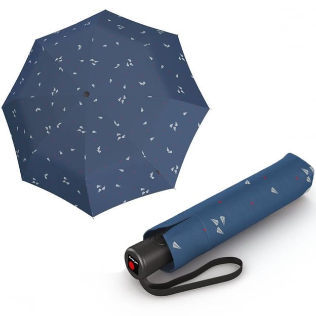 Knirps A.200 Medium Duomatic (2Fly Blue/синя з принтом) - якісна парасолька з автоматичним механізмом від німецького бренду Knirps. Вітростійка модель з надійним механізмом, комфортним розміром купола та сучасним чорним каркасом. Duomatic - повністю автоматична система відкриття та закриття парасольки, що здійснюється з допомогою натискання на велику кнопку. Купол виготовлений з водовідштовхувального поліестеру, який гарантує міцність та зносостійкість. Використання склопластика в конструкції спиць не лише дозволяє знизити вагу парасольки, але й запобігає іржавінню. Легко витримує регулярні випробування вітром та витримує потік до 120 км/год. Завдяки досить великій ручці парасольку зручно тримати, а петелька дозволяє повісити парасольку на руку.