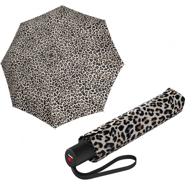 Knirps A.200 Medium Duomatic (Jaguar/забарвлення ягуара) - німецька парасолька-автомат в анімалістичному дизайні від бренду Knirps. Каркас парасольки виконано в сучасному чорному дизайні. Прекрасний захист від дощу з куполом середнього розміру 98 см. Купол виготовлений з водовідштовхувального поліестеру, який гарантує міцність та зносостійкість.