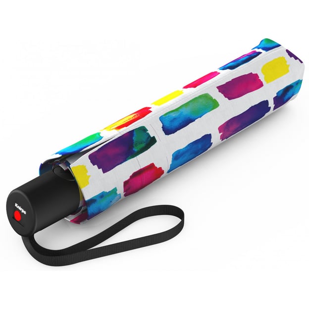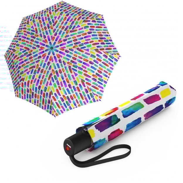 Knirps A.200 Medium Duomatic (Create Crystal/біла з різнокольоровим малюнком) - вітростійка парасолька-автомат в життєрадісному дизайні від німецького бренду Knirps. Каркас парасольки виконано в сучасному чорному дизайні. Прекрасний захист від дощу з куполом середнього розміру 98 см. Купол виготовлений з водовідштовхувального поліестеру, який гарантує міцність та зносостійкість.