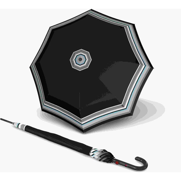 Knirps T.703 Stick Automatic (Grace Black/чорний зі смужками) - елегантна та легка парасолька-тростина від німецького бренду Knirps. Елегантна модель з великим комфортним куполом, який дозволяє запросити на прогулянку під дощем і захистити одразу двох. Механізм Automatic для автоматичного відкриття купола натисканням кнопки, при цьому складається парасолька вручну, що особливо зручно, коли ви сідаєте в автомобіль або заходите у приміщення. Вітростійкий і швидковисихаючий купол з поліестеру на 8 спицях чудово справляється з вітровим навантаженням. Велика ручка-гак з ударостійкого пластика зручно утримується в руці.