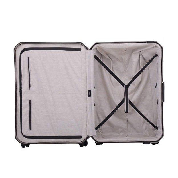 Lojel VOJA/Warm Grey Велика (54 x 77 x 32,5 см / 112 л / сіра) - містка валіза великого розміру з поліпропіленовим корпусом для поїздок з великою кількістю речей. Модель виготовлена з запатентованої поліпропіленової суміші. Корпус зі згладженими кутами витримує великі навантаження, падіння, удари і перепади температур. Валіза закривається на три застібки, на одній з яких є вбудований кодовий замок з системою TSA. Два відділення для речей з роздільником на блискавці і еластичними компресійними ременями, щоб одяг не змішався при транспортуванні. Кілька кишень для аксесуарів та інших невеликих речей. Міцна і витривала 4-х колісна система безшумних подвійних коліс з радіусом обертання на 360 градусів, завдяки чому валіза дуже зручна у використанні. Зверху та збоку є ручки для ручного транспортування, які компактно складаються у корпус.