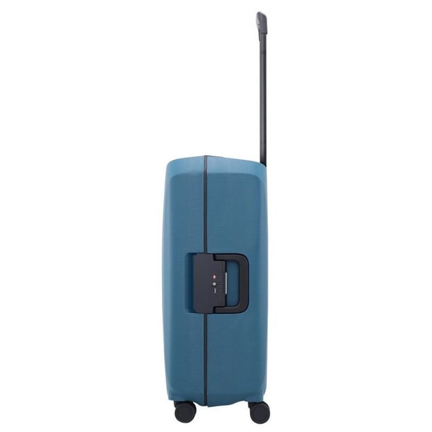 Lojel VOJA/Ink Blue Середня (46 x 66 x 27 см / 66 л / чорнильно-синій колір) - сучасна японська валіза середнього розміру з поліпропіленовим корпусом та замком TSA для поїздок на 1-2 тижні. Найпопулярніший розмір завдяки універсальній місткості. Гнучкий і міцний корпус з поліпропілену витримує великі навантаження, не деформується і не тріскається при падіннях. Замість звичної блискавки валіза має три застібки, найбільша з яких обладнана кодовим замком з функцією TSA. Простота та зручність триточкової системи замикання, а також чудова безпека для ваших речей. Міцна і витривала 4-х колісна система безшумних коліс з радіусом обертання 360 градусів, завдяки чому валіза дуже зручна в експлуатації. Зверху та збоку є ручки для ручного транспортування, які компактно складаються у корпус.