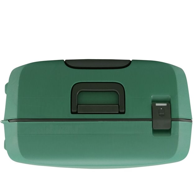 Lojel VOJA/Seaweed Велика (54 x 77 x 32,5 см / 112 л / зелена) - сучасна велика валіза із зеленим поліпропіленовим корпусом та TSA-замком від відомого бренду Lojel. Місткий багаж для тривалих, далеких поїздок та сімейного відпочинку. Валіза виготовлена із запатентованого складу поліпропілену, що робить його практично невразливим до подряпин. Валіза закривається на три застібки, на одній з яких є вбудований кодовий замок з системою TSA. Два відділення для речей з роздільником на блискавці і еластичними компресійними ременями, щоб одяг не змішався при транспортуванні. Кілька кишень для аксесуарів та інших невеликих речей. Міцна і витривала 4-х колісна система безшумних подвійних коліс з радіусом обертання на 360 градусів, завдяки чому валіза дуже зручна у використанні. Зверху та збоку є ручки для ручного транспортування, які компактно складаються у корпус.