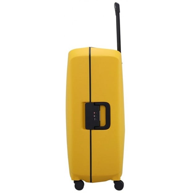 Lojel VOJA/Yolk Yellow Велика (54 x 77 x 32,5 см / 112 л / жовта) - яскрава велика валіза з міцним поліпропіленовим корпусом та кодовим замком TSA від бренду Lojel. Місткий багаж для тривалих, далеких поїздок та сімейного відпочинку. Гнучкий і міцний корпус з поліпропілену витримує великі навантаження, не деформується і не тріскається при падіннях. Валіза закривається на три застібки, на одній з яких є вбудований кодовий замок з системою TSA. Два відділення для речей з роздільником на блискавці і еластичними компресійними ременями, щоб одяг не змішався при транспортуванні. Кілька кишень для аксесуарів та інших невеликих речей. Міцна і витривала 4-х колісна система безшумних подвійних коліс з радіусом обертання на 360 градусів, завдяки чому валіза дуже зручна у використанні. Зверху та збоку є ручки для ручного транспортування, які компактно складаються у корпус.