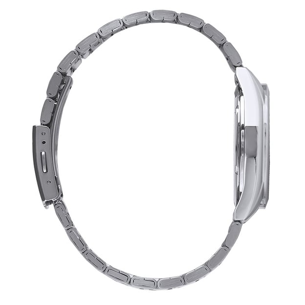 Круглий сталевий корпус діаметром 40 мм і браслет із неіржавної сталі виглядають стримано й універсально. Чорний циферблат читається чітко, а люмінесцентні стрілки та мітки допомагають бачити час у слабкому освітленні. Мінеральне скло додає надійності в повсякденному використанні.