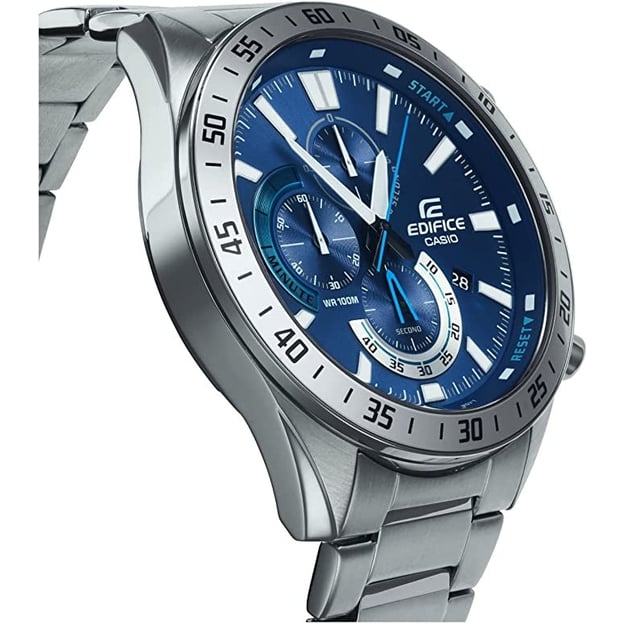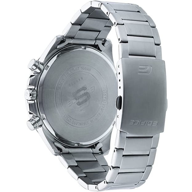 Casio EDIFICE EFV-620D-2AVUEF — чоловічий кварцовий хронограф у круглому корпусі зі сталі. Сріблястий корпус і браслет поєднані з синім аналоговим циферблатом, а мінеральне скло добре підходить для щоденного носіння.