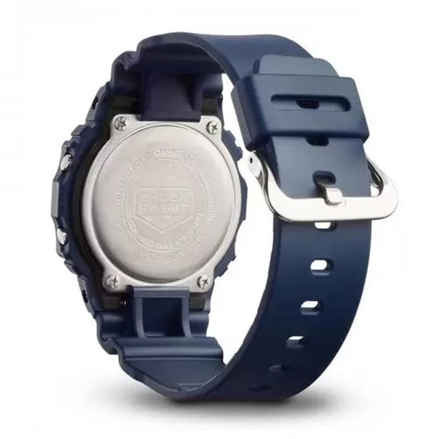 Casio G-SHOCK DW-5600BBM-2ER — чоловічий цифровий годинник із посиленим водозахистом 20 ATM (200 м). Квадратний полімерний корпус і полімерний ремінець легкі та практичні для щоденного носіння, а мінеральне скло добре підходить для активного ритму життя. Модель виконана в синьому кольорі та має впізнаваний стриманий дизайн серії G-SHOCK.