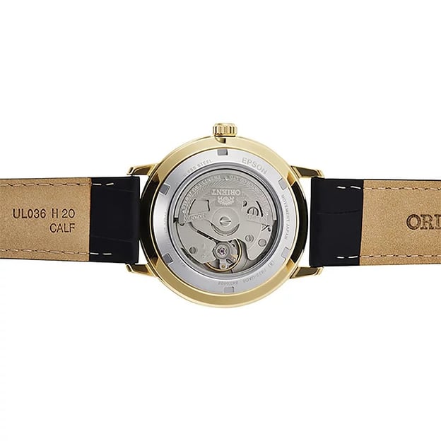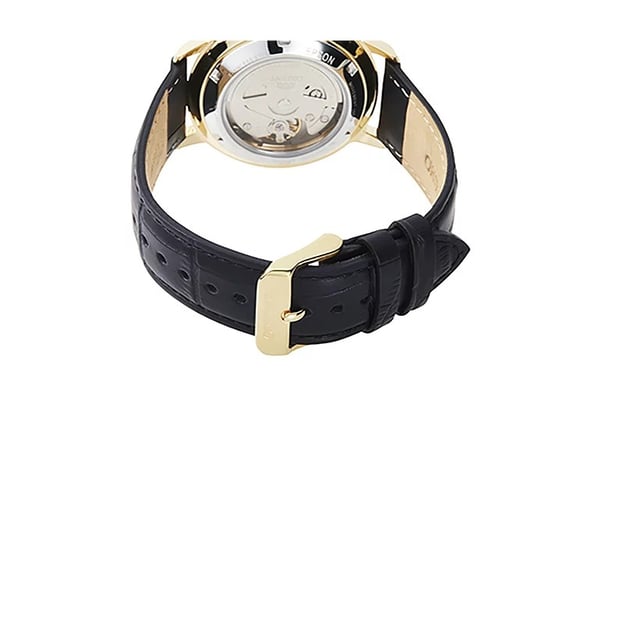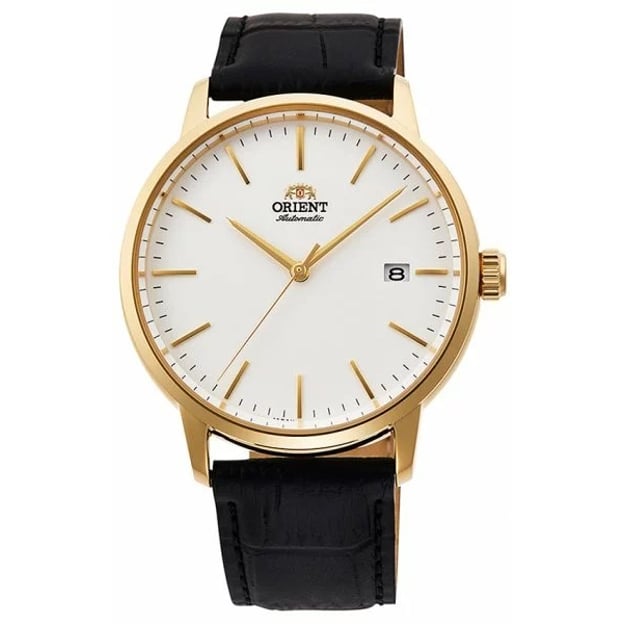Orient Maestro RA-AC0E03S10B — чоловічий годинник у стриманому класичному стилі з круглим корпусом із неіржавної сталі в золотистому кольорі. Білий циферблат зручно читається, а аналогова індикація виглядає акуратно й доречно як на кожен день, так і для більш формальних образів. Чорний шкіряний ремінець надає класичного вигляду та комфортно сидить на зап’ясті.