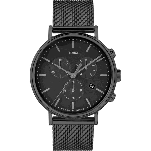 Чоловічий кварцовий годинник Timex FAIRFIELD Chrono Tx2r27300 - модель з функцією хронографа та індикацією дати. Виконаний на металевому браслеті чорного кольору з дрібним плетінням. Таймекс безсумнівно порадує всіх шанувальників бренду підсвічуванням Індігло - просто натисніть на заводну головку і насолоджуйтесь стильною практичністю Таймекс.