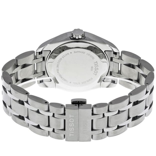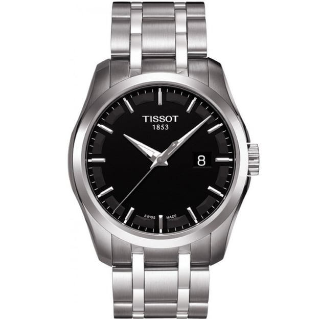 Швейцарський кварцовий годинник для чоловіків Tissot COUTURIER 39 мм з функцією дати на сталевому браслеті. Класична елегантна модель вдало доповнить будь-який образ. Чудово поєднується з діловим костюмом та повсякденним одягом. Ця модель Tissot оснащена функцією EOL, яка заздалегідь повідомить вас про необхідність заміни батарейки стрибками секундної стрілки відразу на дві поділки. Має високий клас водонепроникності до 10 атм та гарне скло із сапфіру. А середній розмір корпусу, залежно від ваших індивідуальних уподобань, буде красиво виглядати навіть на невеликому чоловічому зап'ястку.