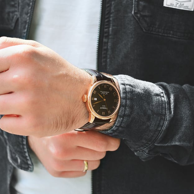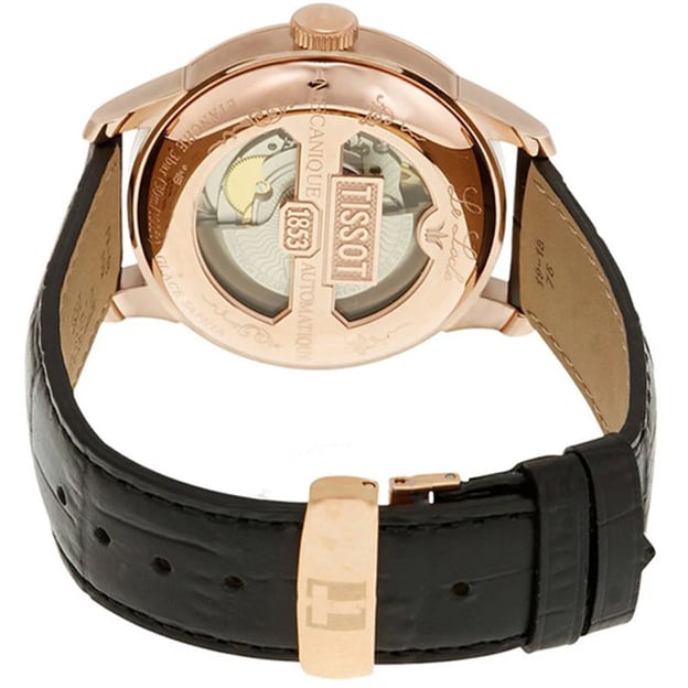 Чоловічий годинник Tissot LE LOCLE Powermatic 80 зі швейцарським автоматичним механізмом, корпусом 39 мм кольору рожевого золота та чорним шкіряним ремінцем. Le Locle - не тільки назва швейцарського міста, але й назва неймовірно популярного сімейства автоматичних годинників Tissot. Моделі відрізняються вишуканою елегантністю завдяки таким деталям як римські цифри та традиційний підпис Le Locle, які доповнюють образ класичного шику. Вони ефектно доповнюють як денні, так і вечірні образи. Годинник оснащений автоматичним механізмом Powermatic 80 із запасом ходу до 80 годин, що вдвічі перевищує звичайний для автоматичних механізмів цього цінового діапазону. А за роботою механізму приємно спостерігати через прозору задню кришку корпусу.