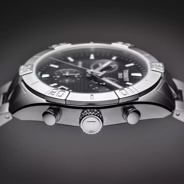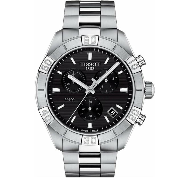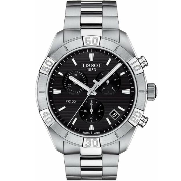 Чоловічий кварцовий хронограф Tissot PR100 Sport Gent Chrono 44 мм з чорним циферблатом і сталевим браслетом. Цей швейцарський годинник - ідеальне поєднання сильного характеру з духом розкоші. Геометричні лінії прикрашають циферблат, чіткі арабські цифри на безелі надають чоловічому годиннику PR100 Sport Gent Chrono відчуття розкішного аксесуара, над яким не владний час і мода. Слід зазначити, що це кварцовий хронограф повністю відповідає сучасності. Годинник Tissot з масивним корпусом та браслетом із застібкою-метеликом. Має рівень водонепроникності до 10 атм та чудово витримає випробування часом, а компанія Tissot надає 2-річну міжнародну гарантію.