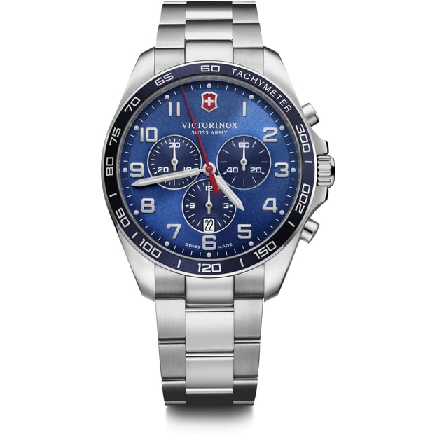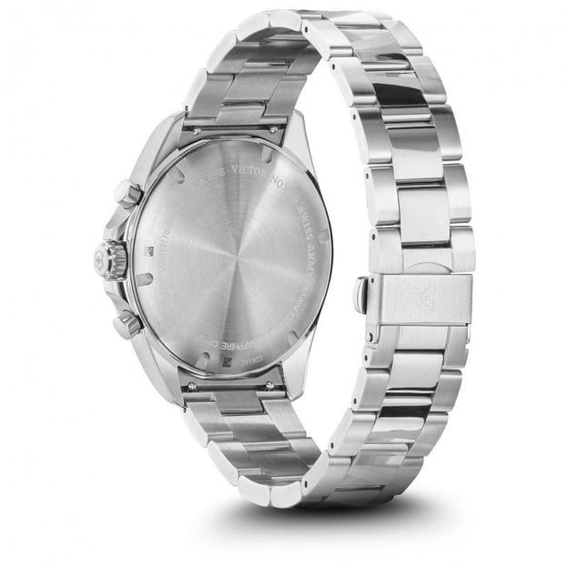 Victorinox Swiss Army Fieldforce Chrono 241901 — 42-мм хронограф з синім циферблатом і сталевим браслетом, створюють виразний сучасний образ, не відволікаючи від основної функціональності. Корпус із неіржавної сталі забезпечує відчутну, але комфортну посадку на руці, а чітка індикація дозволяє швидко зчитувати час у будь-яких умовах.