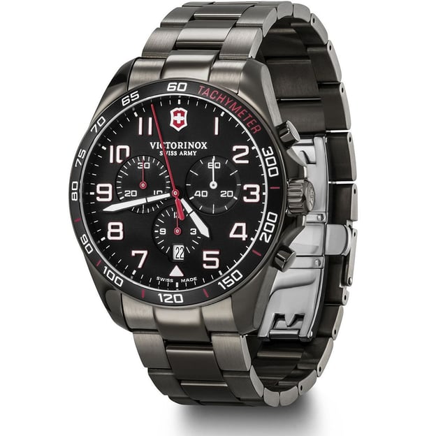 Victorinox Swiss Army Fieldforce Chrono 241890 — хронограф 42 мм, у якому чорний циферблат і повністю сталевий формат створюють виразний образ, при цьому залишаючи головний акцент на практичності та функціональності годинника. Корпус із нержавної сталі забезпечує відчутну, але комфортну посадку на руці, а індикація залишається чіткою та легкою для сприйняття у будь-яких умовах.