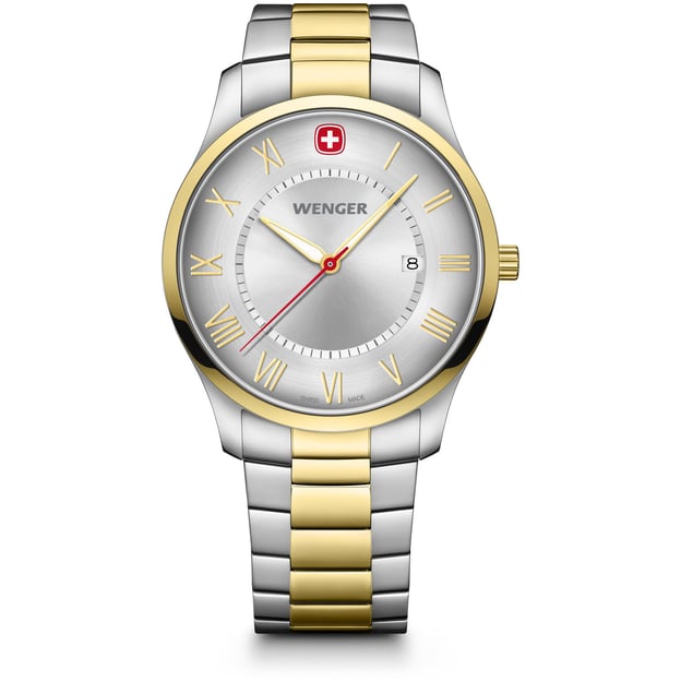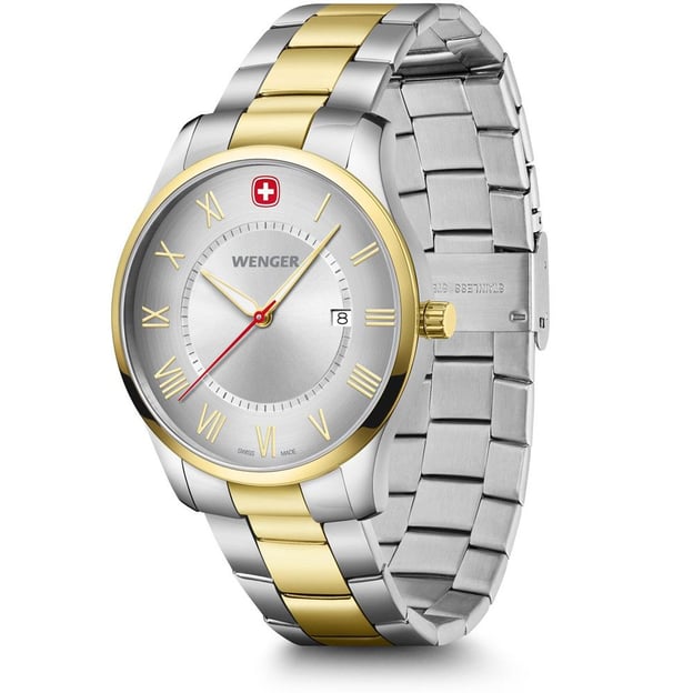 Швейцарський чоловічий годинник Wenger CITY CLASSIC W01.1441.143 в двоколірному дизайні зі сріблястим циферблатом. Прекрасне поєднання стилю, якості та функціональності. Цей чоловічий годинник чудово підходить як для повсякденного носіння, так і для більш офіційних заходів.