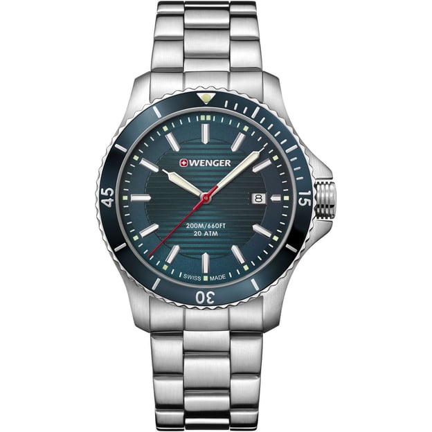 Водонепроникний чоловічий годинник Wenger SEAFORCE W01.0641.129 в сталевому сріблястому дизайні. Стильний і надійний годинник, створений для підводного плавання та повсякденного використання. Вони поєднують у собі швейцарську якість та сучасний дизайн, який підкреслить вашу індивідуальність.