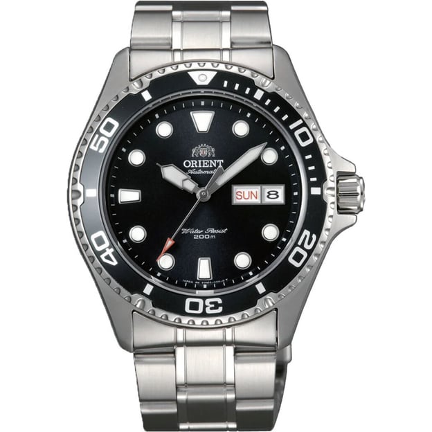 Orient Ray II FAA02004B9 — чоловічий годинник з посиленим водозахистом 20 ATM / 200 м. Чорний циферблат добре читається, а люмінесцентні стрілки та мітки допомагають швидко зорієнтуватися в часі при слабкому освітленні. У повсякденному користуванні зручно, що на циферблаті є індикація дати та дня тижня.