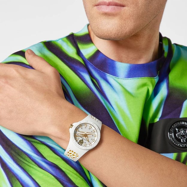 Plein Sport Thunderstorm PSBBA0323 — чоловічий годинник з круглим корпусом в білому виконанні. Білий циферблат добре читається, а кварцовий механізм забезпечує точний щоденний хід без зайвих налаштувань.