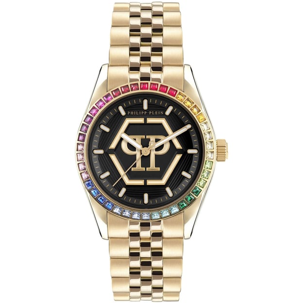 Золотистий жіночий годинник Philipp Plein DATE SUPERLATIVE Ppw2ba0623 з райдужними кристалами. Ідеальний вибір для тих, хто цінує якість та стиль і шукає елегантний годинник із родзинкою. Елегантний годинник з середнім корпусом 38 мм і сталевим браслетом із застібкою-метеликом, який залежно від індивідуального смаку прикрасить практично будь-яке жіноче зап'ястя. В основі цього годинника лежить японський кварцовий механізм, гарантує точне вимірювання часу і забезпечує наступні функції: години, хвилини, секунди.