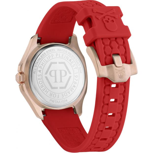 Яскравий жіночий годинник Philipp Plein THE $PECTRE LADY Ppwtaa1024 з різнокольоровими кристалами на корпусі та червоним силіконовим ремінцем. Годинник Philipp Plein з колекції The $pectre привертає увагу та ідеально поєднує розкіш і веселощі. Ця смілива барвиста модель поєднує корпус кольору рожевого золота з яскравим червоним силіконовим ремінцем та безелем, який виблискує завдяки різнокольоровим кристалам.