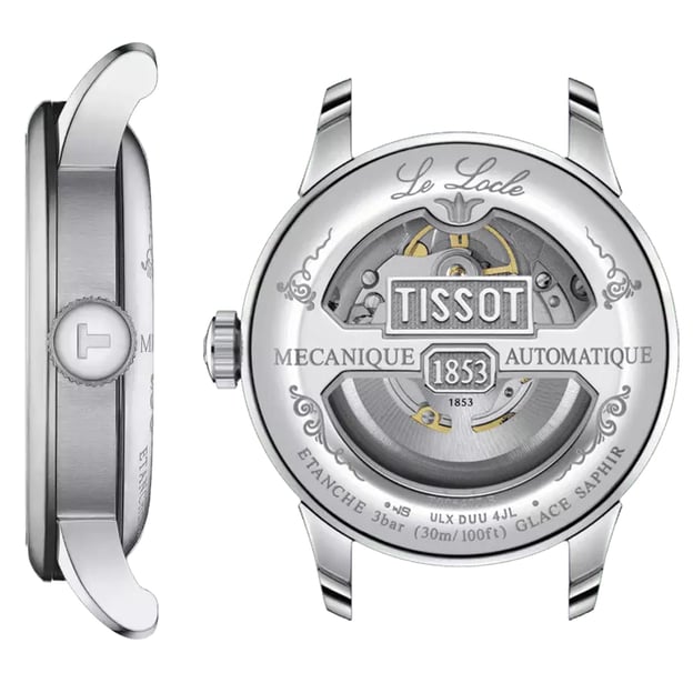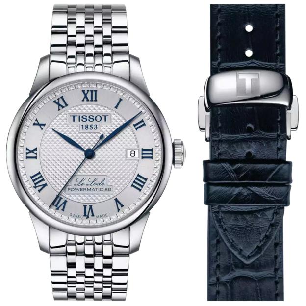 Елітний сталевий годинник Tissot LE LOCLE Powermatic 80 зі швейцарським автоматичним механізмом і додатковим ремінцем. Le Locle - не тільки назва швейцарського міста, але й назва неймовірно популярного сімейства автоматичних годинників Tissot. Моделі відрізняються вишуканою та позачасовою естетикою завдяки таким деталям як римські цифри та традиційний підпис Le Locle, які доповнюють образ класичного шику. Ця модель Tissot Le Locle Powermatic 80 є 20-ю ювілейною моделлю колекції Le Locle, випущеною в 2003 році на честь 150-річчя бренду. Годинник ефектно доповнює будь-які образи і стане вашою візитною карткою успішної людини. Годинник оснащений автоматичним механізмом Powermatic 80 із запасом ходу до 80 годин, що вдвічі перевищує звичайний для автоматичних механізмів цього цінового діапазону. А за складною роботою механізму приємно спостерігати крізь прозору задню кришку корпусу.