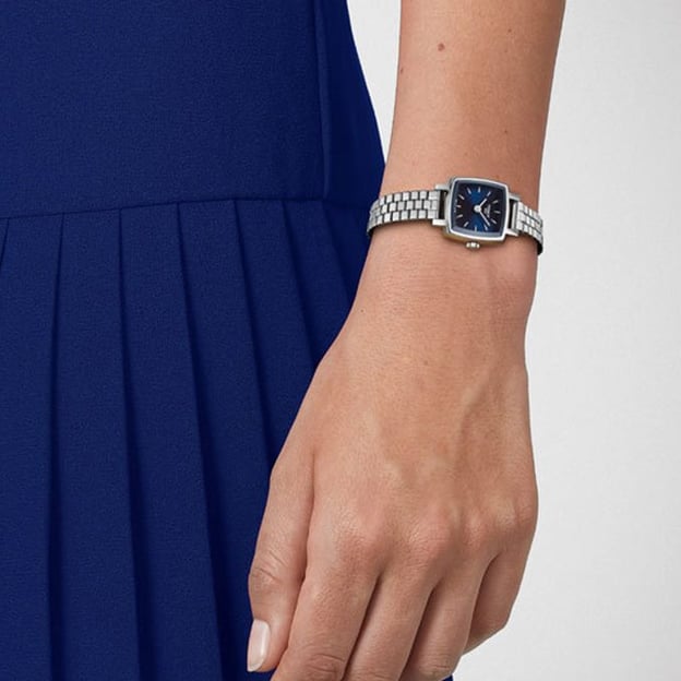 Жіночий годинник Tissot Lovely Square T058.109.11.041.01 - акуратна квадратна модель 20 мм з елегантним браслетом та кварцовим механізмом. Цей годинник випромінює розкіш, ефектно доповнить денний та вечірній образи. Створений на честь мініатюрного жіночого годинника Tissot 60-х років, цей ідеально складений годинник високої якості має стильний квадратний циферблат і товсте огранене сапфірове скло, яке нагадує діамант.