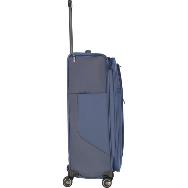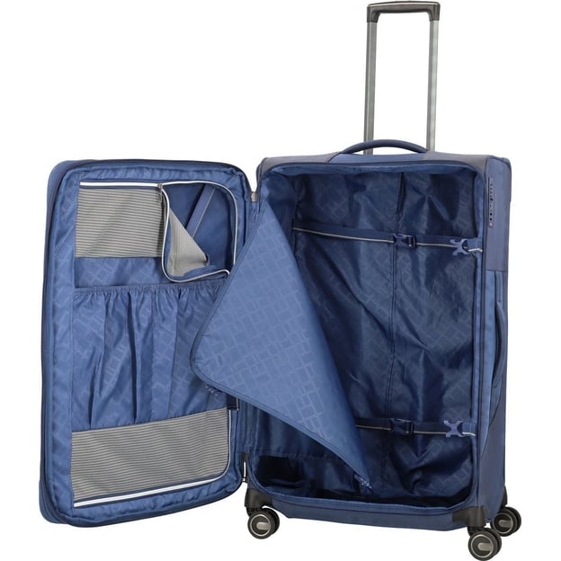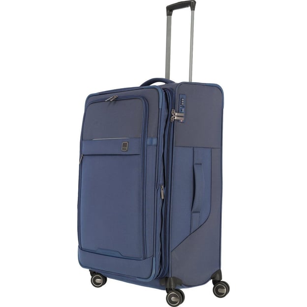 Titan PRIME/Navy Велика (47 x 78 x 31 см / 91 л / синя) - німецька валіза великого розміру з функцією розширення об'єму, яка підійде для тривалих поіздок або сімейного відпочинку. Найбільша місткість, легка вага і продуктивний формат для подорожей з великою кількістю речей. Колекція PRIME поєднує лаконічну елегантність та функціональність. Міцний поліестеровий матеріал з двоколірними акцентами, що забезпечує високу стійкість до стирання, пошкоджень та вологи. Вбудований кодовий замок захистить ваші речі від небажаного доступу. А чотири маневрені колеса з плавним ходом забезпечать легкість переміщення валізи в будь-якому напрямку.