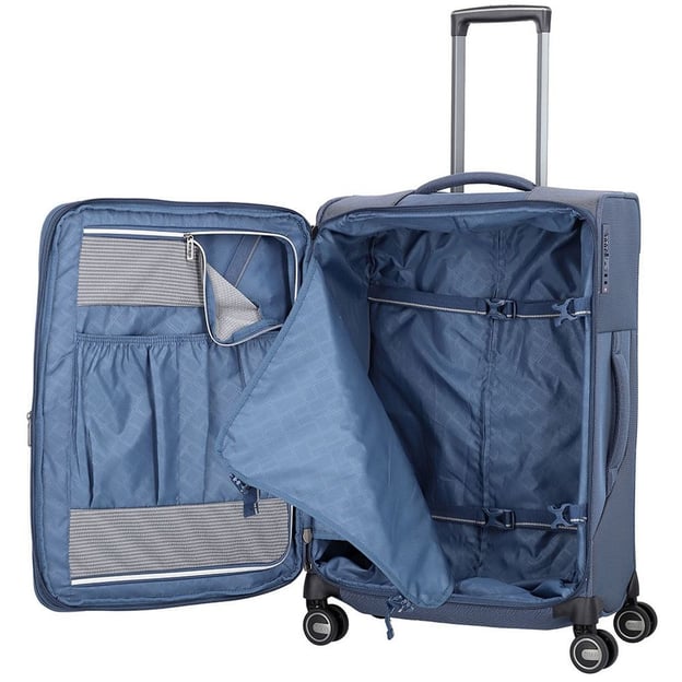 Titan PRIME/Navy Середня (44 x 68 x 28 см / 65 л / синя) - універсальна валіза середнього розміру з функцією розширення об'єму. Безліч відділень і багатофункціональний інтер'єр чудово продумані для поїздок або відпустки на 1-2 тижні. Колекція PRIME поєднує лаконічну елегантність та функціональність. Міцний поліестеровий матеріал з двоколірними акцентами, що забезпечує високу стійкість до стирання, пошкоджень та вологи. Кодовий замок блокування TSA вже вбудований в корпус. Крім додаткового захисту, він обов'язковий у багатьох країнах для безпроблемних митних оглядів. Чотири подвійних колеса забезпечують плавний і майже безшумний хід.