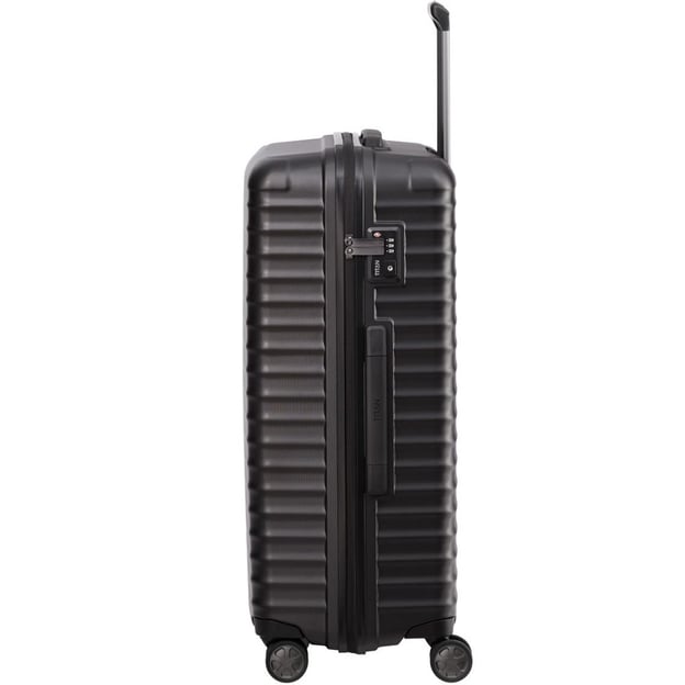 Titan Litron Black Велика (52 x 75 x 30 см / 100 л / чорна) - велика стильна валіза в чорному дизайні з TSA-замком для тривалих поїздок. Валіза для всіх, хто любить мандрувати з великою кількістю багажу. Валіза виготовлена з полікарбонату, який стійкий до подряпин та пошкоджень, легкий і міцний. Колекція LITRON відрізняється вражаючим простором та продуманими деталями. Втоплені в корпус колеса, що одночасно робить конструкцію коліс більш надійною та мінімізує габарити валізи. А подвійні ролики подбають про більшу стійкість та маневреність незалежно від ваги багажу. Замок з функцією TSA LOCK захистить від злому в дорозі та при митному огляді.