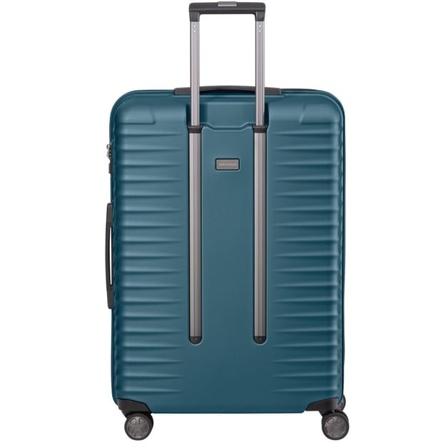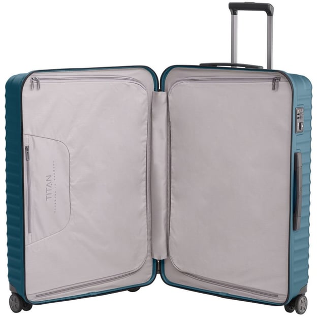 Titan Litron Petrol Велика (52 x 75 x 30 см / 100 л / синя) - велика німецька валіза з кодовим TSA замком для тривалих, сімейних поїздок. Стильний варіант для мандрівок з великою кількістю речей. Валіза виготовлена з полікарбонату, який стійкий до подряпин та пошкоджень, легкий і міцний. Колекція LITRON відрізняється вражаючим простором та продуманими деталями. Втоплені в корпус колеса, що одночасно робить конструкцію коліс більш надійною та мінімізує габарити валізи. А подвійні ролики подбають про більшу стійкість та маневреність незалежно від ваги багажу. Кодовий замок із функцією TSA подбає про додаткову безпеку вашого багажу.