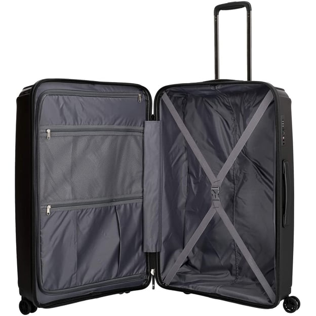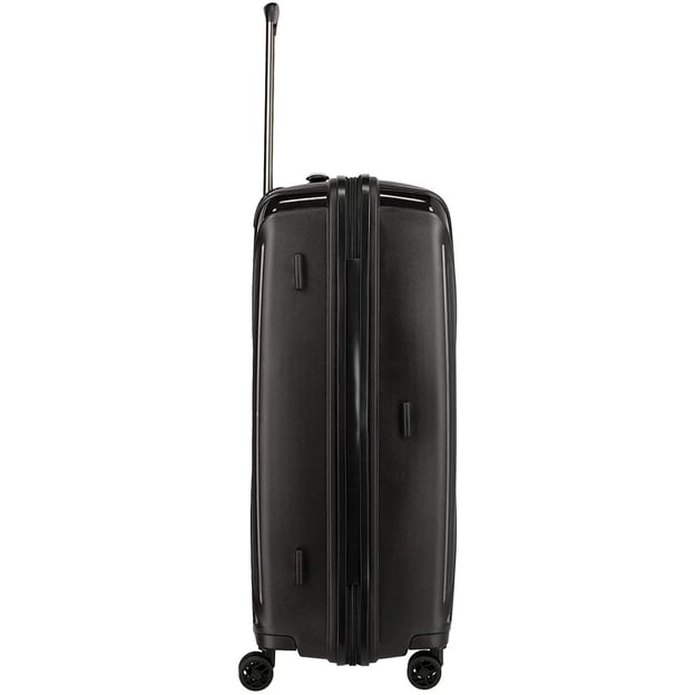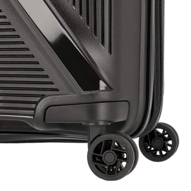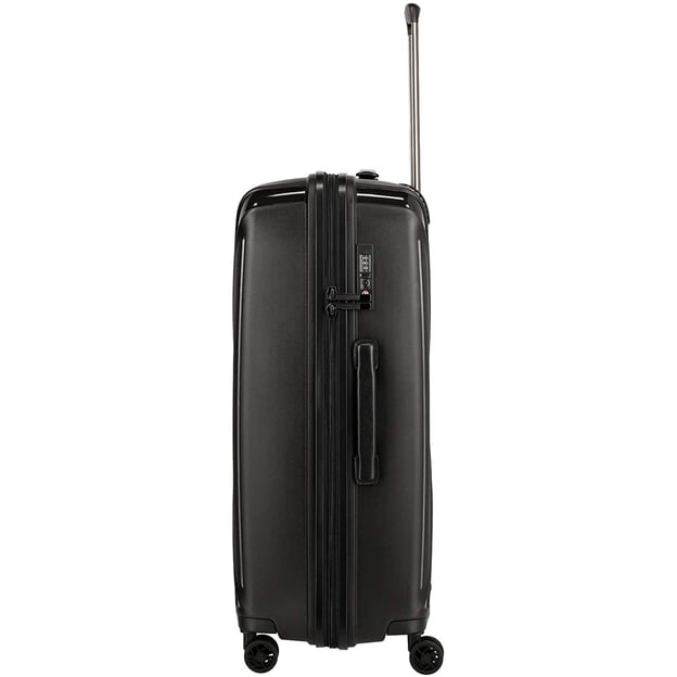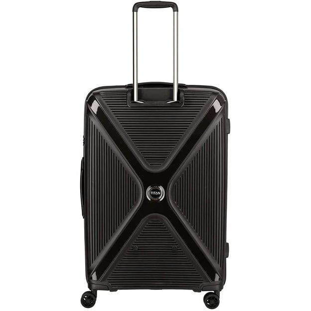 Titan PARADOXX/Black Uni L Велика (51 x 71 x 31 см / 113 л / чорна) - вишукана велика валіза з кодовим TSA замком для поїздок з великою кількістю речей. Естетичний дизайн з контрастними шкіряними деталями. Корпус валізи виготовлений із високоякісного поліпропілену німецького виробництва. Завдяки гнучкості матеріалу таку валізу можна перевозити на 80% заповненою. Фактурна поверхня перешкоджає подряпинам та потертостям. За безпеку транспортування речей відповідає вбудований кодовий замок із функцією TSA. Він значно прискорює проходження прикордонного контролю та захищає від злому. Чотири подвійні колеса, що обертаються на 360 градусів, забезпечують маневреність і стійке положення при транспортуванні.