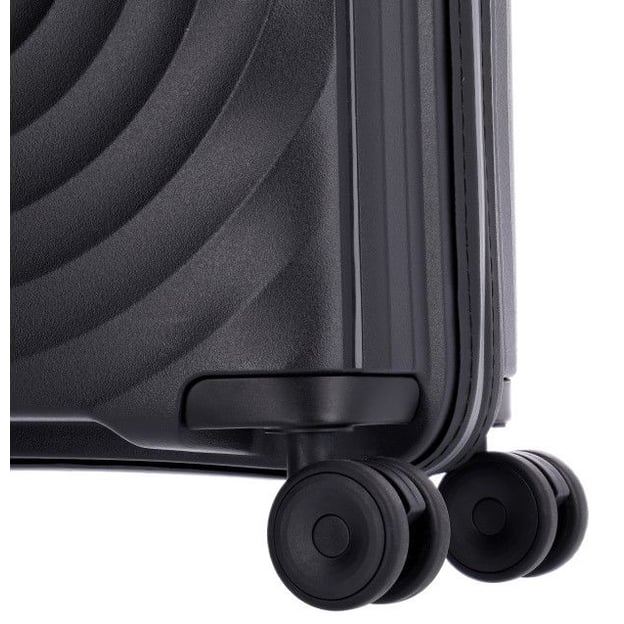 Titan LOOPING/Black Маленька (39 x 55 x 20 см / 37 л / чорна) - стильна поліпропіленова валіза невеликого розміру для короткотривалих поїздок від німецького бренду Titan. Фактурна поверхня підкорює своєю динамічністю та бездоганним стилем. Двокамерний простір із функціональними внутрішніми відділеннями. Роздільники, компресійні ремені і кишені - все, що потрібно для акуратної упаковки. Корпус виготовлений з удароміцного та витривалого поліпропілену. Валіза стійка до високих і низьких температур, різних пошкоджень та деформацій. Особливі властивості поліпропілену дозволяють заповнювати валізу наполовину та при цьому бути впевненим у надійному захисті крихких предметів. Замок з функцією TSA LOCK захистить від злому в дорозі та при митному огляді. Чотири подвійні колеса, що обертаються на 360 градусів, забезпечують приємний комфорт при транспортуванні.