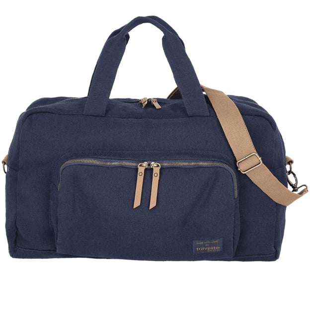 Travelite Hempline Navy (синя; 32,3 літрів) - повсякденна універсальна дорожня сумка для поїздки на вікенд або занять спорту. Модель з одним основним відділенням. Для швидкого доступу до речей першої необхідності, передбачена фронтальна кишеня на блискавці. Комфорт перенесення забезпечує знімний плечовий ремінь та дві короткі ручки.