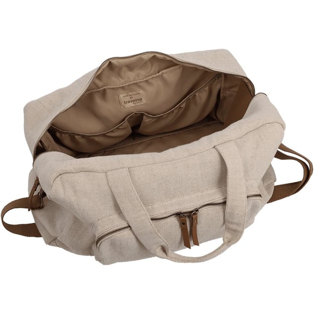 Travelite Hempline Beige (бежева; 32,3 літрів) - повсякденна універсальна дорожня сумка для поїздки на вікенд або занять спорту. Модель з одним основним відділенням. Для швидкого доступу до речей першої необхідності, передбачена фронтальна кишеня на блискавці. Комфорт перенесення забезпечує знімний плечовий ремінь та дві короткі ручки.