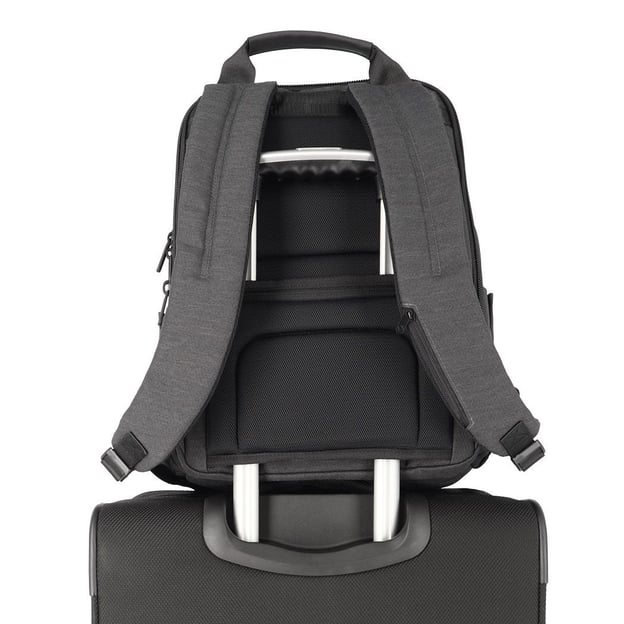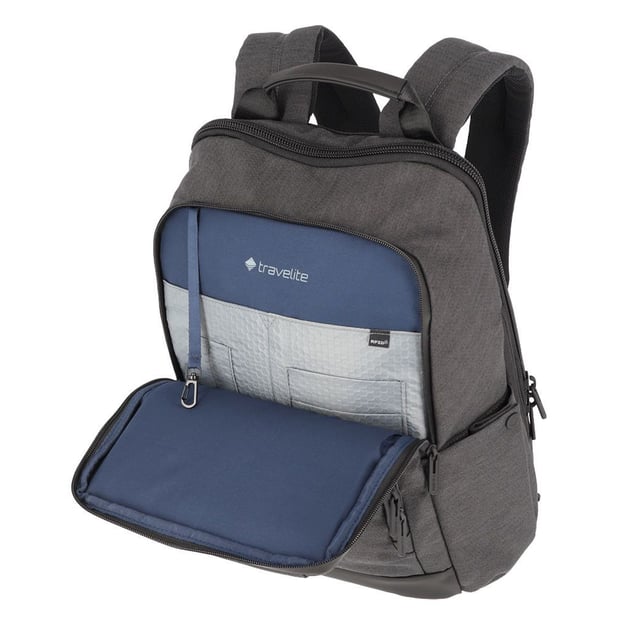 Travelite MEET/Anthracite (30x41x14см / 17 л / темно-сірий) - функціональний рюкзак для ноутбука з розширенням від Travelite. Зручна і функціональна модель підходить для навчання, роботи, відряджень та подорожей. Лаконічний і сучасний дизайн, підійде як для ділового стилю, так і для повсякденного використання. Модель розроблена з урахуванням усіх необхідних аспектів для зручного та безпечного зберігання речей, документів та портативної електроніки. Практичний матеріал виробу із поліестеру практично не вбирає вологу, швидко сохне, не розтягується і тримає форму. Основне відділення з двома м'якими кишенями, які підходять для пристроїв з діагоналлю до 11 і 15,6 дюймів, також є внутрішня кишеня на блискавці. На лицьовій стороні рюкзака розташовано дві невеликі кишені на блискавці для швидкого доступу до речей першої необхідності. У відділенні-органайзері з RFID-захистом є два тримача для ручок, дві кишені для дрібниць і карабін для ключів. При необхідності параметри моделі можна відрегулювати за допомогою вставки на блискавці.