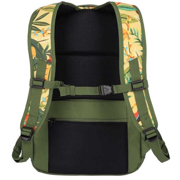 Travelite KICK OFF 69/Jungle (31x45x16 см / 22 л / зелений з принтом) - яскравий міський рюкзак з відділенням для ноутбука 15,6 дюймів, призначений для подорожей, роботи та активного способу життя. Яскравий принт в тематиці джунглів. Практичний і функціональний дизайн ідеально підходить як для хлопців, так і для дівчат.
