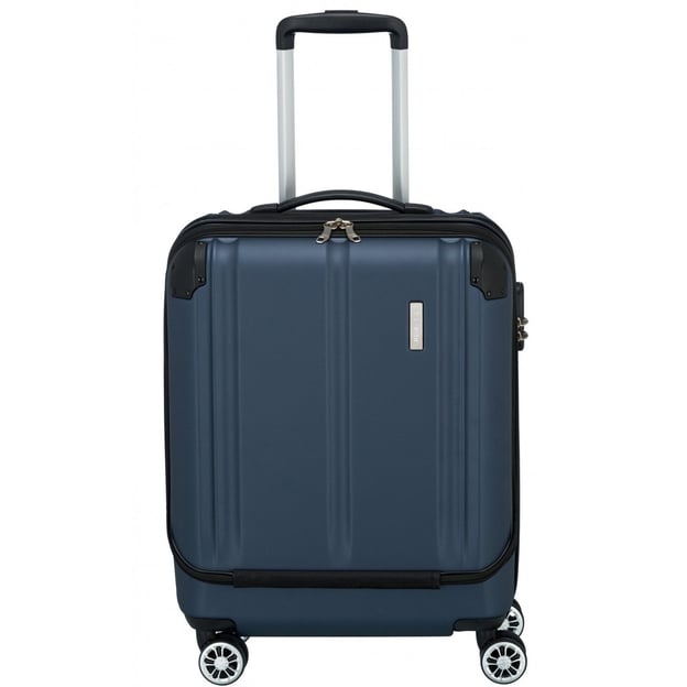 Валіза Travelite CITY/Navy S Маленька (40x55x20\40 літрів\темно-синя) - валіза у твердому корпусі на 4-х колесах для комфортних короткострокових відряджень. Відповідає параметрам ручної поклажі більшості авіаліній. Елегантна дорожня модель маленького розміру із відділенням для офісної атрибутики. Вміст багажу під надійним захистом кодового замка. Дизайн валізи орієнтований на безпеку: продуманий захист кутів та стійка до подряпин поверхня з ABS-пластику захищають її від пошкоджень.
