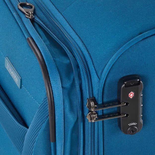 Travelite CHIOS TL080049 (поліестер / бірюзово-синя / 78х46х30-34 см / 90-97 л) - велика текстильна валіза на 4 колесах із замком TSA та розширенням. Завидна місткість, легка вага та висока якість роблять цю модель ідеальним компаньйоном для поїздок на довго та з великою кількістю речей, а завдяки додатковій можливості збільшити розмір, ви можете сміливо зібрати речі навіть у сімейну подорож з дітьми. Зовнішня кишеня додасть комфорту та забезпечить швидкий доступ до необхідних у дорозі речей.