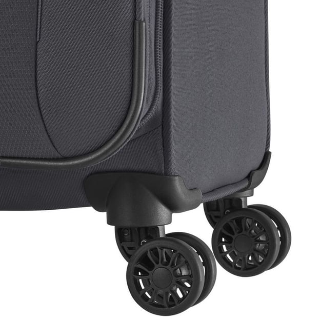 - 4 колеса з двома роликами дозволяють везти валізу поруч із собою без особливих зусиль.